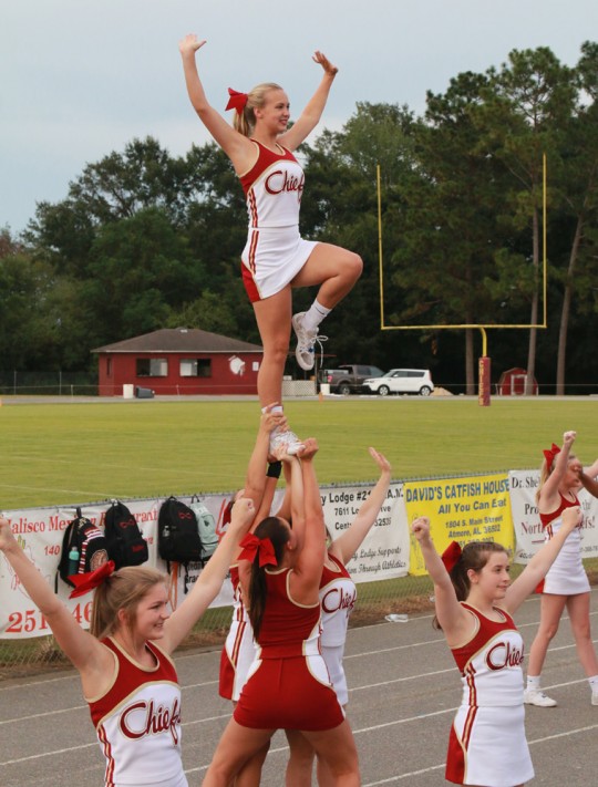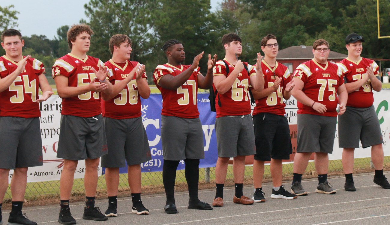 They were introduced to this year’s junior varsity football team and cheerleaders, varsity football team and cheerleaders, the Tribal Beat Band, the volleyball team, the Ernest Ward Middle School football team and local youth teams and cheerleaders.