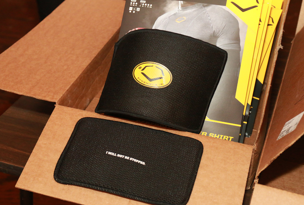 The shield is different than a foam pad that just softens a blow; the impact from a hard hit is dispersed across the entire shield