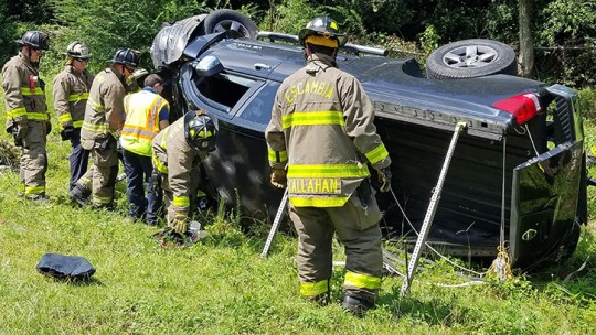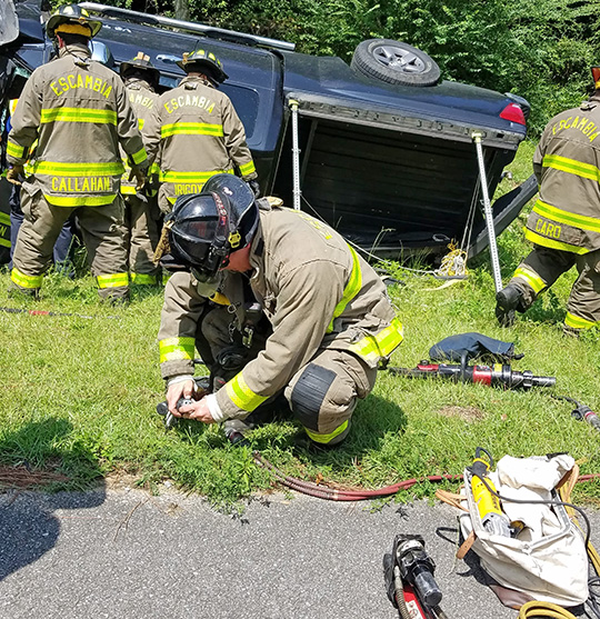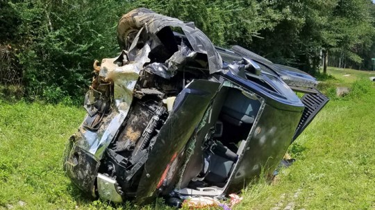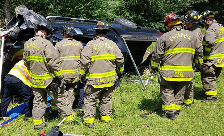One person was injured in a single pickup wreck Wednesday morning on Highway 297A at Sherrilane Drive in Cantonment. The vehicle left the roadway, traveled through a ditch and became airborne when it struck a culvert. The accident is under investigation by the Florida Highway Patrol. NorthEscambia.com photos by Kristi Barbour, click to enlarge.