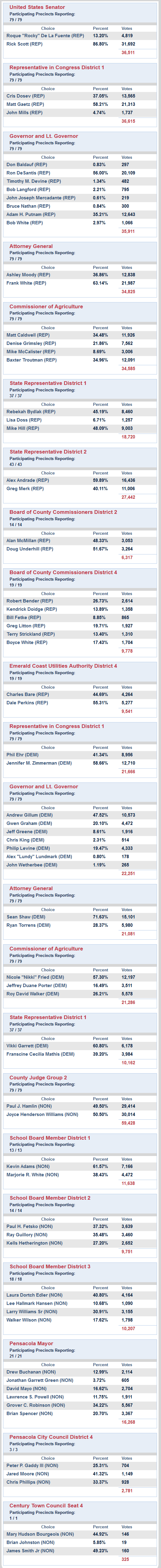 Complete, but unofficial vote totals from Tuesday’s election are: