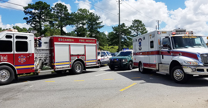 An Escambia County spokesperson said 911 dispatchers were not notified by the railroad that the crossing was blocked.