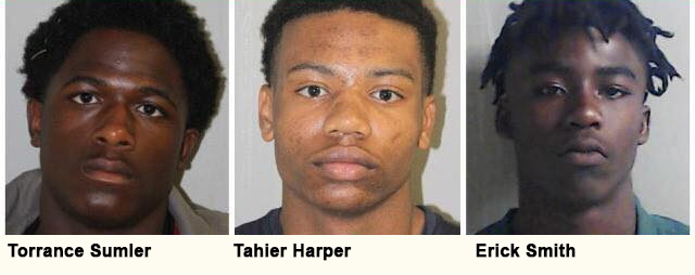About 11 p.m. Saturday night, several items including a fully automatic .223 caliber M4 and several magazines of ammunition and a Taser were stolen from an Escambia County Sheriff’s Office SWAT sergeant’s vehicle. Three juveniles – Tahier Harper, 16, Torrance Sumler, 17, and Erick Smith, 17 – were charged in connection with the vehicle burglary.
