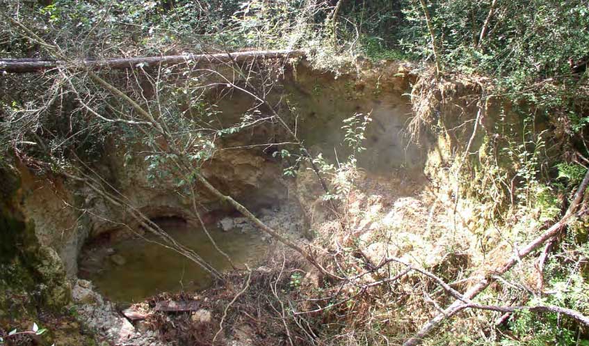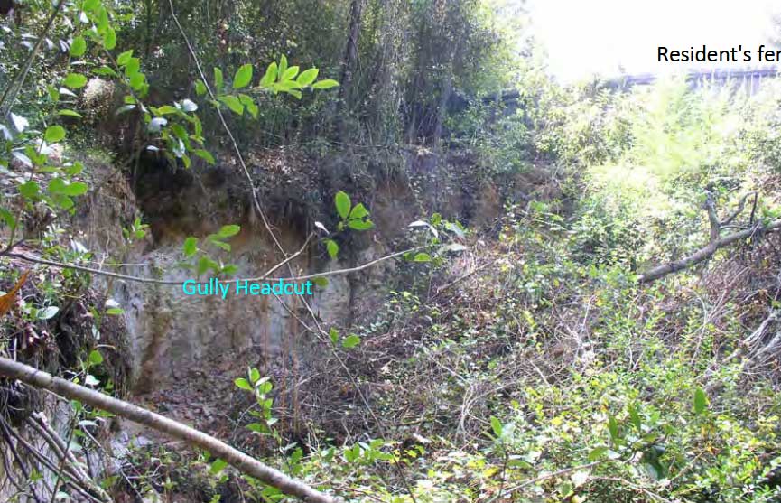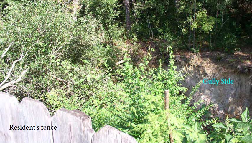 At one location along the gullet an almost vertical slope has been identified adjacent to a property owner’s privacy fence on Crooked Oak Drive. Should this gully be left unattended, Escambia County officials said damage to private properties, homes and and continued degradation of eroded sediment in Clear Creek is eminent.