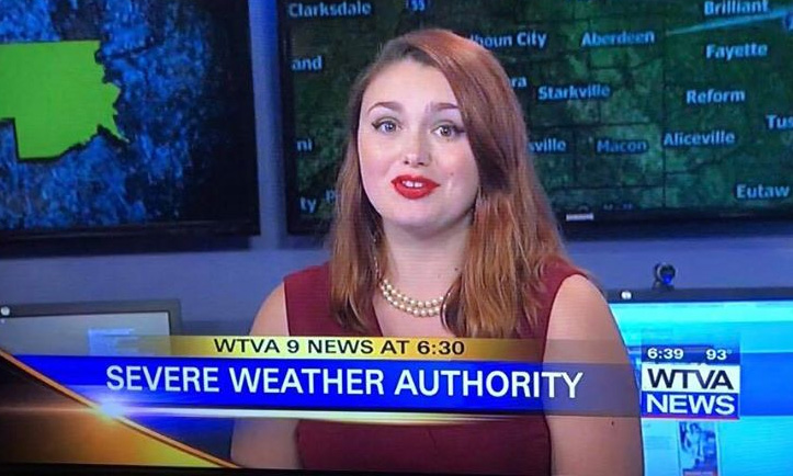 Kent was the featured weather personality Wednesday afternoon on WTVA TV in Tupelo, MS. She has interned at the station this summer as she works toward her meteorology degree at Mississippi State.