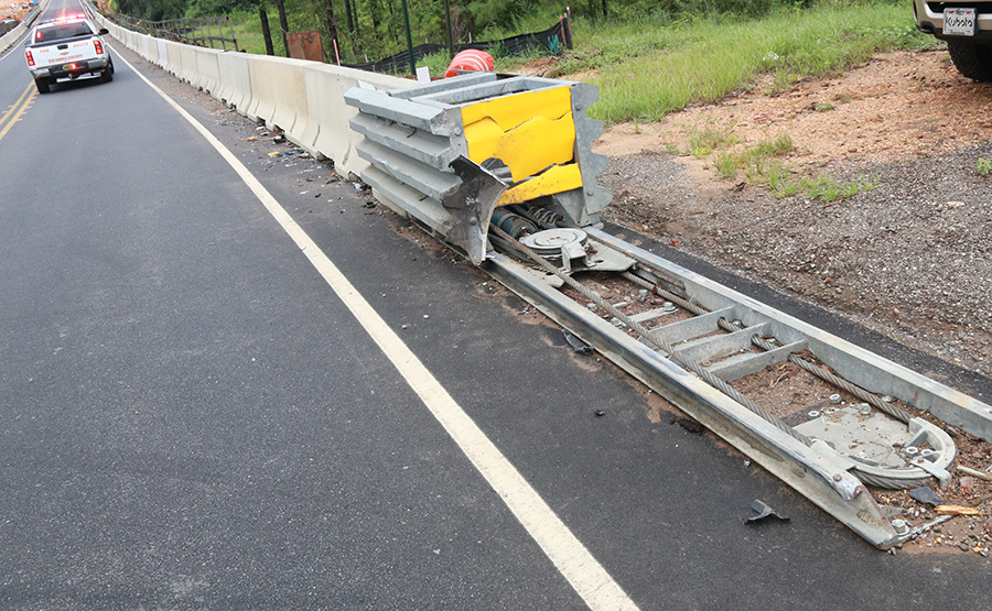 The woman hit a crash cushion on Highway 97 over Sandy Hollow Creek, just south of Highway 4 about 2:25 p.m. The cushion performed as designed, absorbing much of the crash energy and stopping the vehicle before it his a concrete barrier.