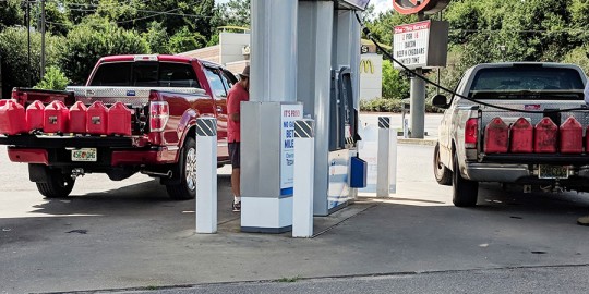 Pictured: Drivers fill gas cans in advance of Gordon Sunday afternoon just across the state line in Atmore. NorthEscambia.com photo, click to enlarge.