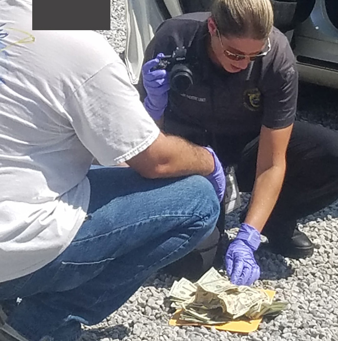 Investigators could been seen removing cash from the Winns’ vehicle and placing it into evidence. At least some of the money was visible in the back floorboard of the car.