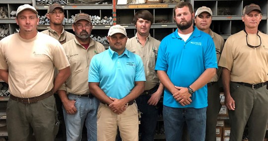 Pictured top: (L- R) Adam York, Grayson Peters, Kirk Carter, Zack Carter, AJ Faircloth, Norris Brooks, Ricky Quates and Tracy Emmons. Pictured below: Southern Pine Crews arriving in Dobson, NC. Courtesy photos for NorthEscambia.com, click to enlarge.