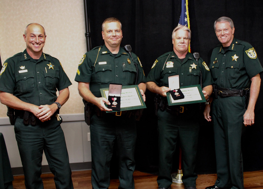 Fryer and Bashore (pictured top) were two of four Escambia County deputies receiving a Lifesaving Medal Tuesday during a quarterly awards ceremony at the Escambia County Sheriff’s Office.
