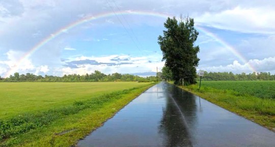 Pictured: A rainbow over Bradberry Road in Bratt. Photo by Sheena Carach for NorthEscambia.com, click to enlarge.