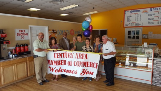 The Century Area Chamber of Commerce held a grand opening ribbon cutting at a new doughnut shop. Sunrise Donuts is located at 8321 North Century Boulevard in a building last occupied by a Chinese restaurant. Photo for NorthEscambia.com, click to enlarge.