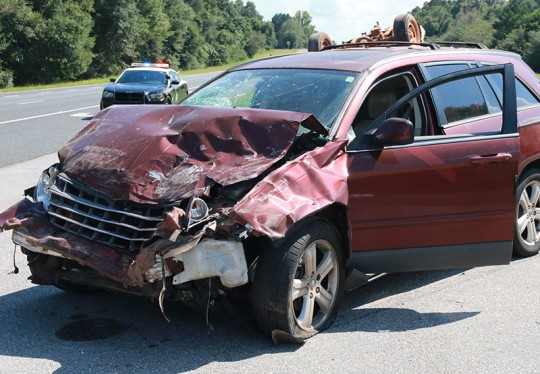 Three people were injured in a two vehicle crash Saturday afternoon on Highway 29 in McDavid.