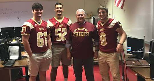 Each teacher is invited to a pregame meal, asked to speak to the team before the game and invited to stand on the sideline with the team during the game.