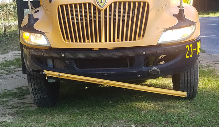 The Florida Highway Patrol said bus driver Erica Godwin, 25, was stopped at a stop sign on Warning Road at Bush Street when she turned her school bus into a Dodge Avenger driven by 57-year old Angela Lord of Pensacola. The front of the bus collided with the side of the car.