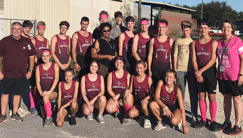 Athletes in cross country meet Thursday afternoon at Northview High School ran in honor of breast cancer survivors, including Athletic Director Obreonne Smith and teacher Vicki Cook.
