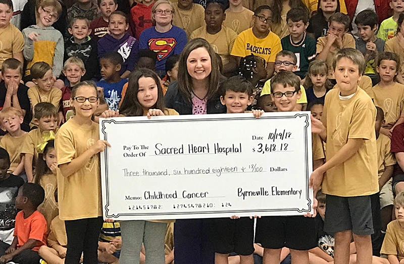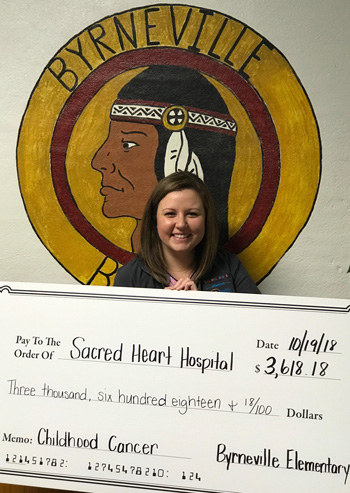 Friday morning, the students presented a check for $3,618.18 to Sacred Heart Pediatric Hematology/Oncology.