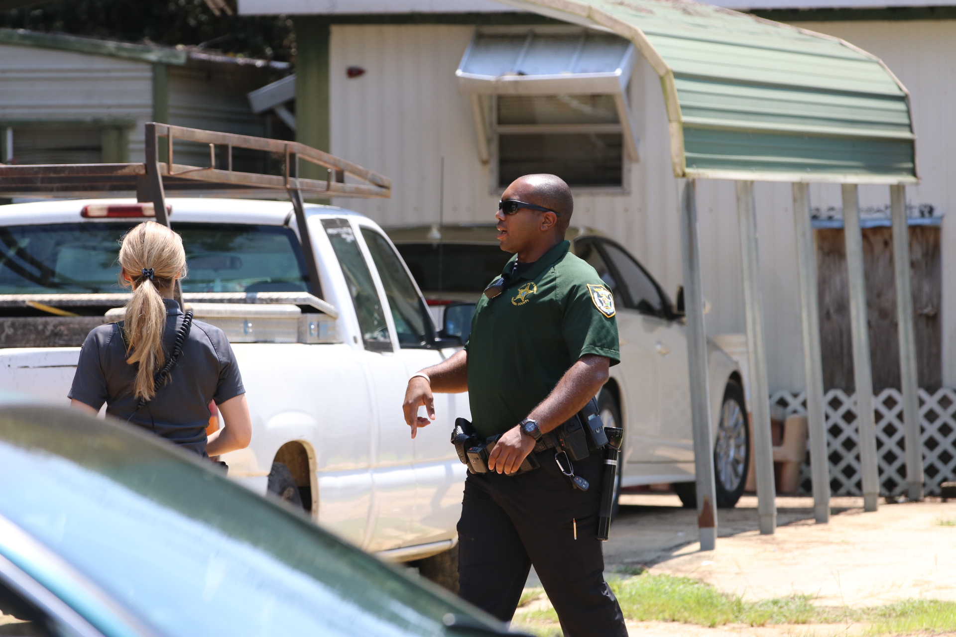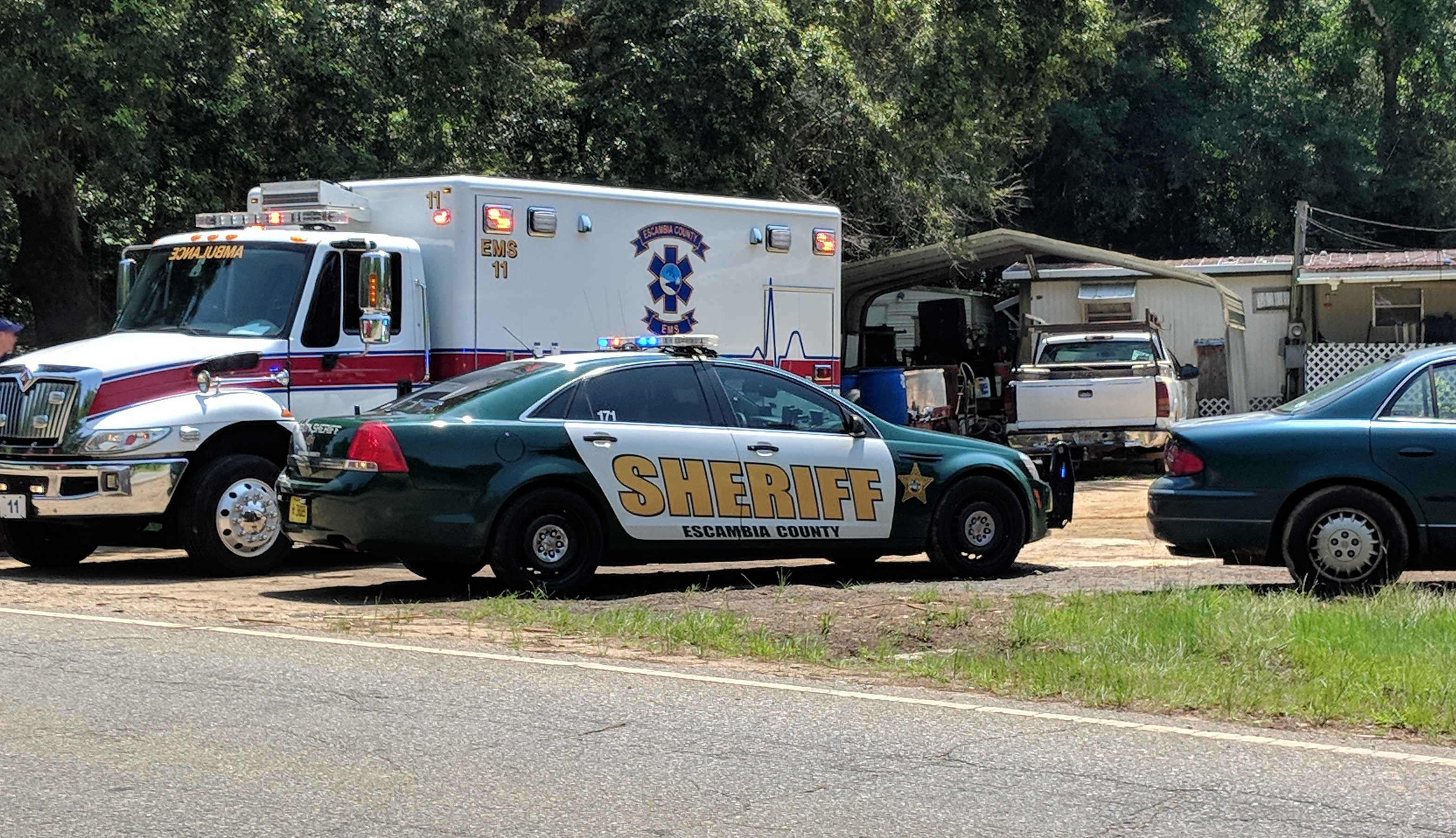 Pictured: The scene shortly after a July 28 shooting in the 1400 block of Muscogee Road in Cantonment. NorthEscambia.com photos, click to enlarge.