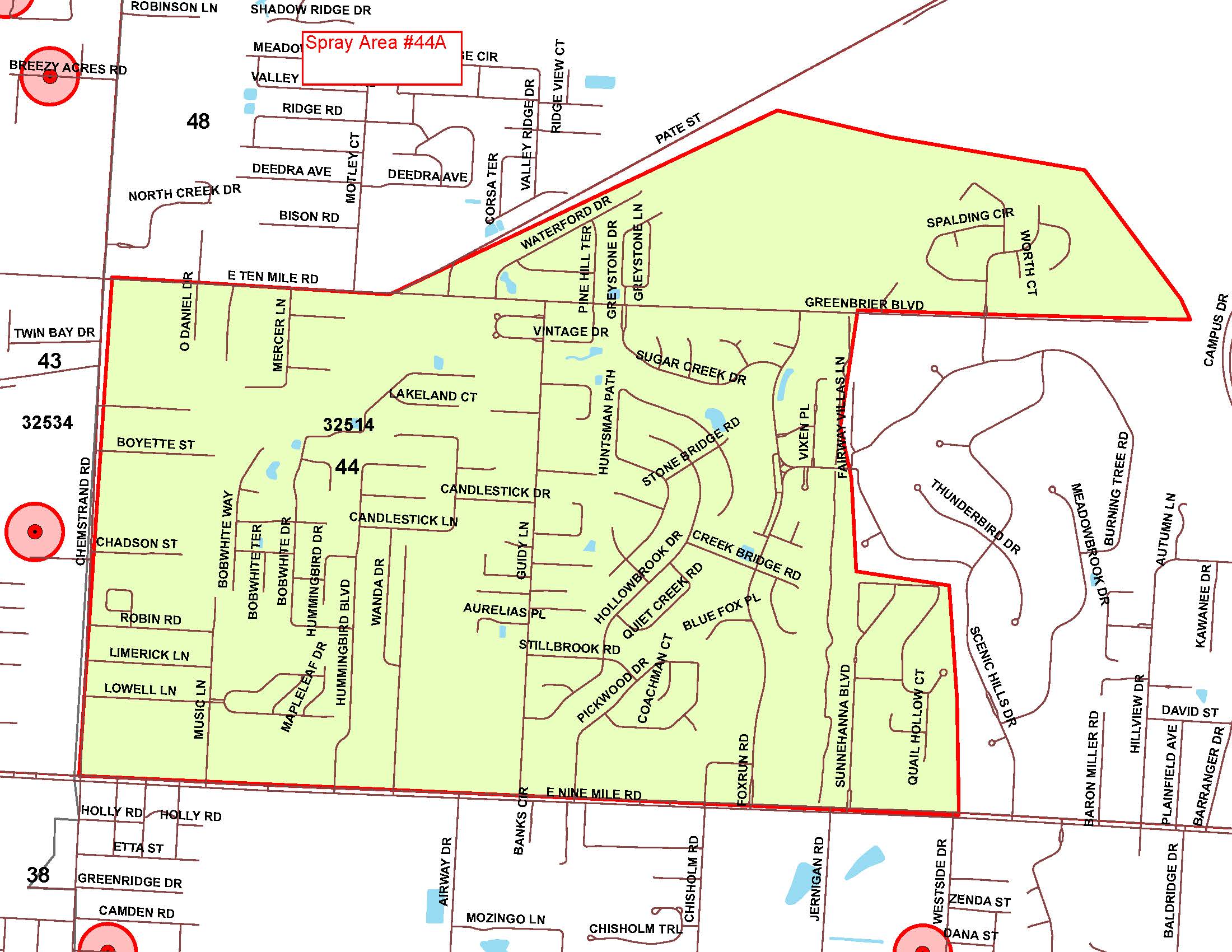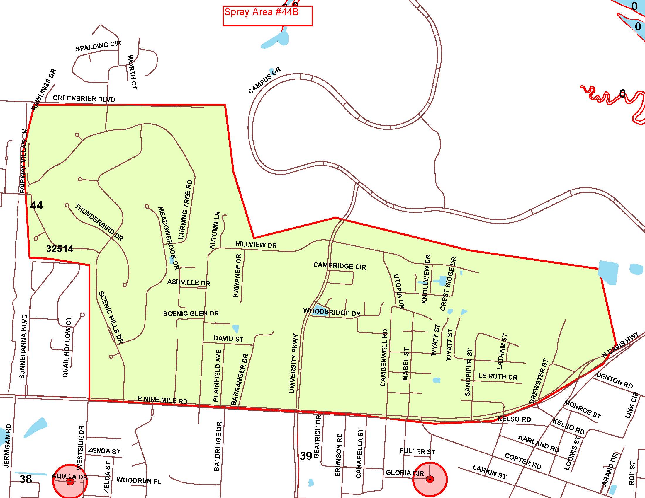 The areas are roughly west of Highway 29 between Muscogee Road and Kingsfield Road, an east of Chemstrand between East Nine Mile and East Ten Mile roads.