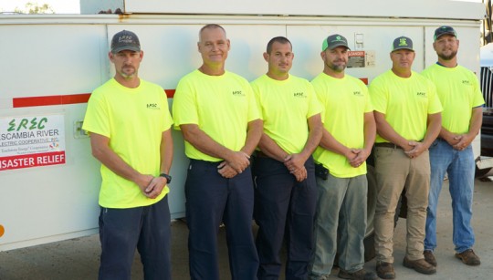 Escambia River Electric Cooperative in Jay sent line crews to sister cooperative Gulf Coast Electric Co-op in Wewahitchka, Florida. Gulf Coast EC’s entire power system is down following Hurricane Michael.