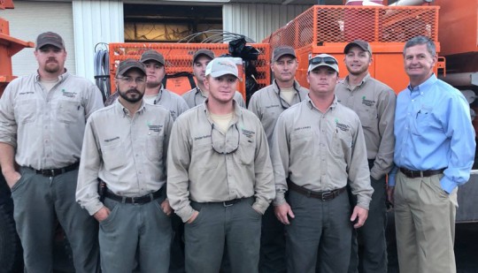 Pictured above: EREC crewmen (L-R) Kevin Macht, Ken Blair, Mark LeFlore, Doug Stewart, David Deese and Matthew Reynolds. Pictured inset: The EREC crews depart Jay. Pictured below: Southern Pine crewmen (front,L-R) Phillip Norsworthy, Christian Bodiford and Josh Lowery, (back ) Chad Morris, Nathan McCrory, Jake Salter, Tracy Emmons, Jimmy Wilson and Raymond Wiggins. Photos for NorthEscambia.com, click to enlarge.