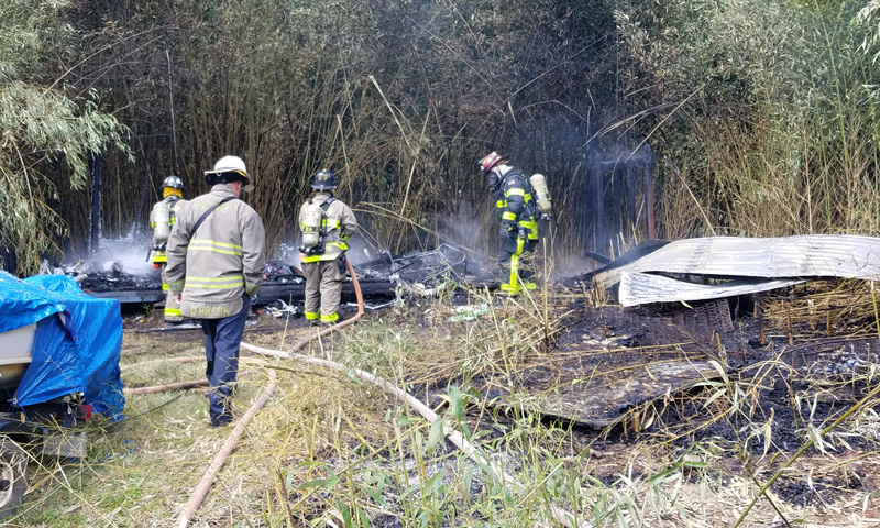 Fire destroyed an outside storage shed on Old Novak Road in Cantonment Tuesday afternoon. The cause of the fire was not immediately released. There were no injuries reported. NorthEscambia.com photos by Kristi Barbour, click to enlarge.