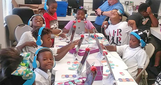 Children are learning to code during a program from the West Florida Library each week at Carver Park in Cantonment.
