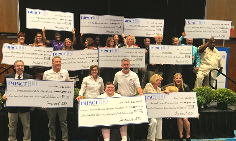IMPACT 100 Pensacola Bay Area, a local women’s philanthropic organization awarded $100,300 each to 11 nonprofit organizations Sunday for a total of $1,103,000.