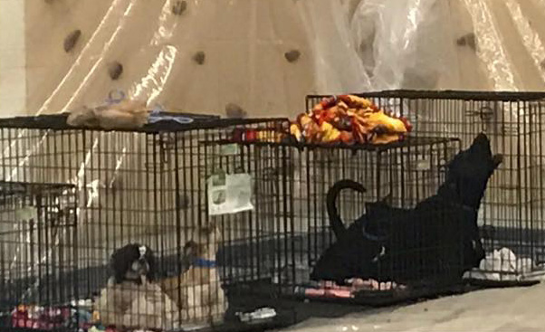 In the pet friendly shelter, owners provide their pet’s food, water, bedding, medications, collar with ID tag, familiar items like toys, crate, leash and proof of vaccinations. They are required to stay in an adjacent building.