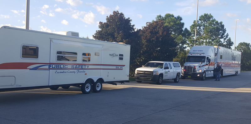 The Escambia County Sheriff’s Office along with teams from Escambia County Emergency Management, Escambia County Fire Rescue, and Escambia County EMS, departed this morning for the Panama City Beach area to help the residents of Bay County recover from the effects of Hurricane Michael. The ECSO sent a team of 25 with a communications tower, logistics trailers, restrooms, cooking facilities, chainsaws, water, ice, food, and all the equipment they need to be self-sufficient so they can do whatever is asked of them.