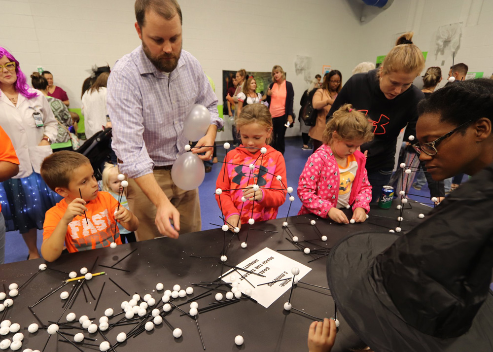 It was night of madness for students, family members and faculty. From dry ice smoke to spider webs, from pumpkin oobleck to building with “bones” (AKA Q-tips), students got to experiment and create for a couple of hours of scientific wonder and adventure.