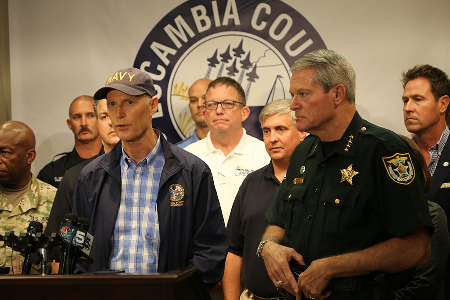 “It’s a massive storm. We haven’t seen anything like this in the Panhandle in decades,” Scott said at the Escambia County Emergency Operations Center.