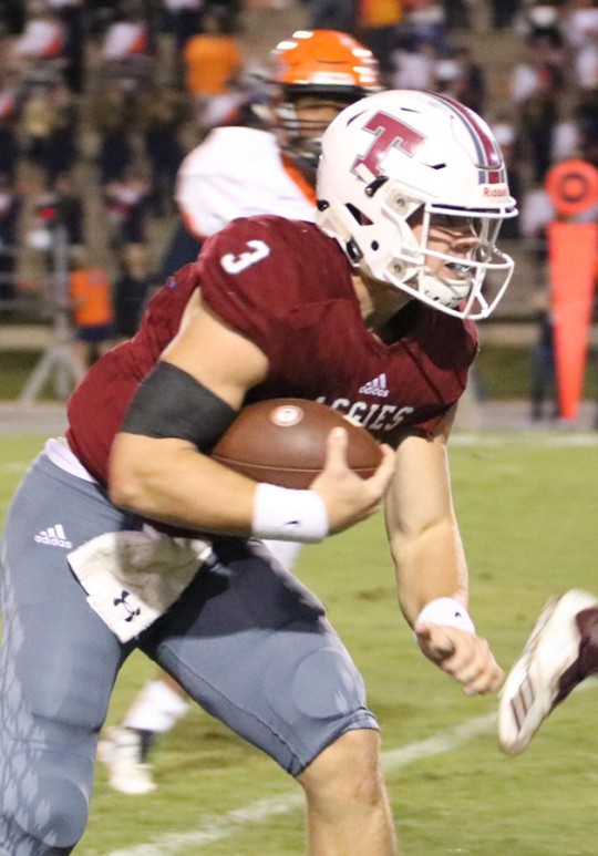 After battling to 31-18, Tate scored on a 74-yarder from quarterback Hunter Riggan to Patrick Palmer with 7:44 to go in the third to make it 31-25. Escambia answered with another TD about a minute later, 37-18.
