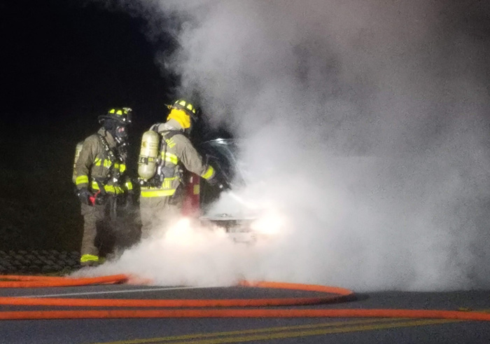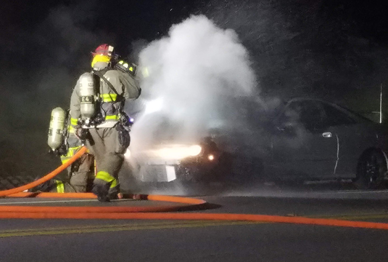 A vehicle fire on Highway 297A briefly shut down Highway 297A near West Kingsfield Road Tuesday night. The fire was extinguished by the Cantonment Station of Escambia Fire Rescue. There were no injuries report. NorthEscambia.com photos, click to enlarge.