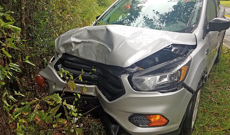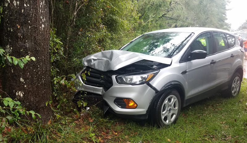 A driver was not injured when she hit on a tree on Barrineau Park Road near the railroad tracks, just east of the Perdido River Thursday morning. The Molino Station of Escambia Fire Rescue, Escambia County EMS and the Florida Highway Patrol responded. NorthEscambia.com photos by Kristi Barbour, click to enlarge.
