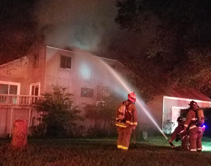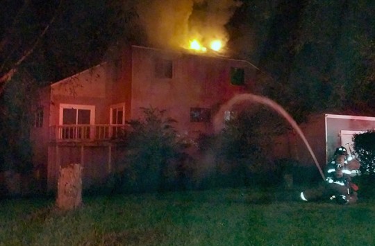 Flames were shooting from the roof of the three story wood frame home on High Springs Road when firefighters arrived. All of the occupants were able to get out safely.
