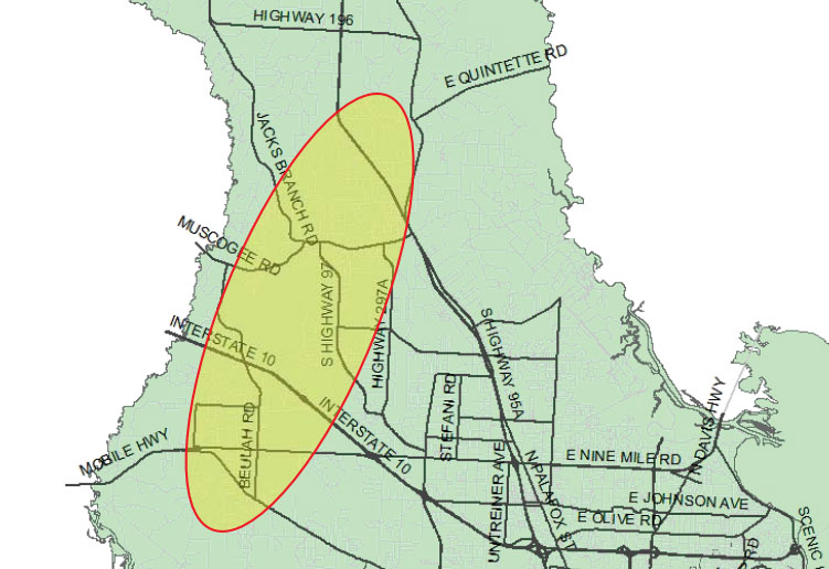 …I agree with most of these folks on Jack’s Branch..I grew up in Gonzalez before US 29 was 4 lane..and 6- lane US 29 to nine and a half rd. a waste of money..most practical idea would be to upgrade US 29 into an expressway ( I-110 ) in the same route as US 29 now runs to the state line or even all the way to I-65..I lived in NYC for 2 years…all concrete and asphalt..US 29 is already here..use that foot print..yes..it would be expensive..but you would not destroy thousands of acres of Escambia county..