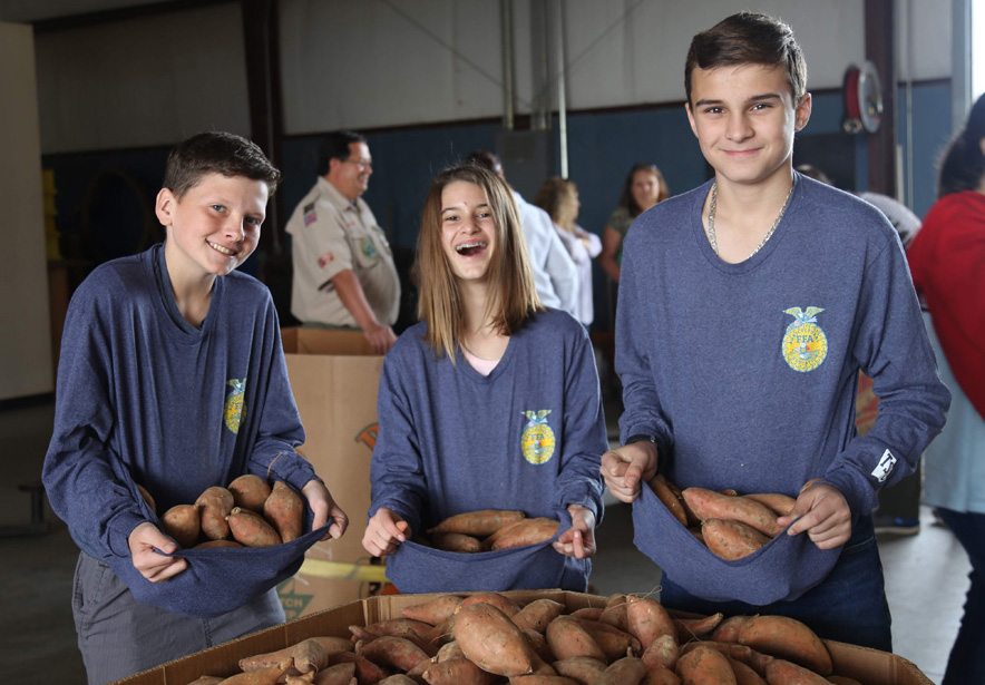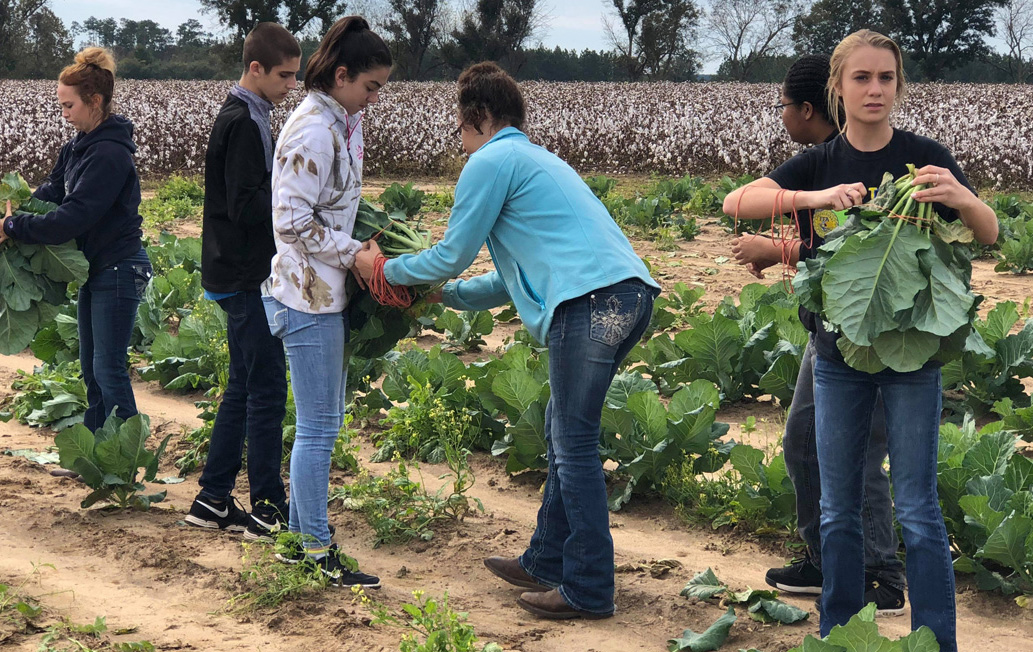 The students were from agricultural programs and organizations that included Tate High School, Northview High School, Jay High School, Central School, Beulah Middle School, Barrineau Park 4-H and the Boy Scouts. They harvested produce including greens, sorted sweet potatoes and bagged freshly ground corn meal and grits.