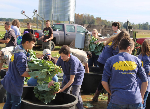 Students from Escambia and Santa Rosa counties worked in fields near Jay Monday to harvest vegetables that will help feed about 800 needy families this week for Thanksgiving.