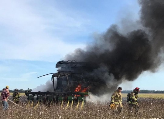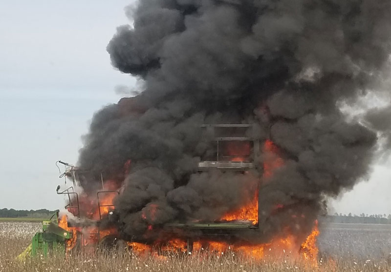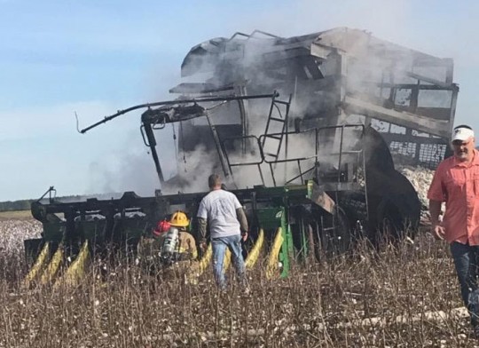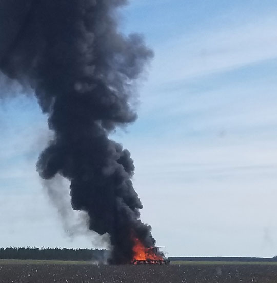 Fire destroyed a cotton picker in field on Highway 178 south of Jay Saturday. There were no injuries reported. Photos by April McCullough for NorthEscambia.com, click to enlarge.