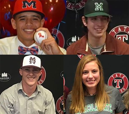 Pictured top: Four Tate seniors signed to play college ball. Names are below each photo below. Courtesy photos for NorthEscambia.com, click to enlarge.