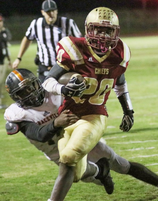The Chiefs added touchdowns in the second from Durant and Barton to hold a 26-8 lead at the half on a damp, chilly and windy night at Tommy Weaver Memorial Stadium.