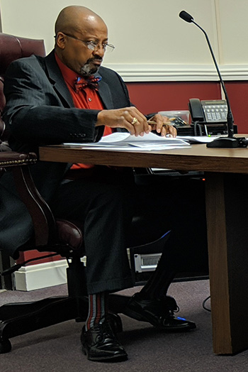 Pictured top: The Century town shop (file photo). Pictured inset: Century Mayor Henry Hawkins listens to discussion about security cameras during a recent town council meeting. NorthEscambia.com photo, click to enlarge.
