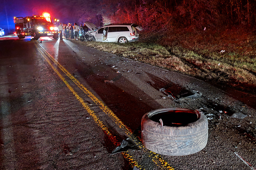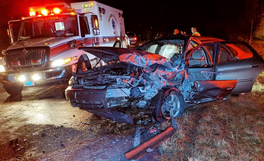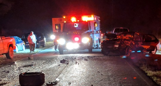 According to a witness, the driver of a Ford Taurus crossed the centerline of West Highway 4 near Still Road and into the path of a Mercedes-Benz SUV occupied by two adults and two young children about 6:15 p.m.