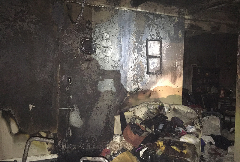 The kitchen received moderate fire damage, and there was smoke damage throughout the home. There were no smoke alarms present.