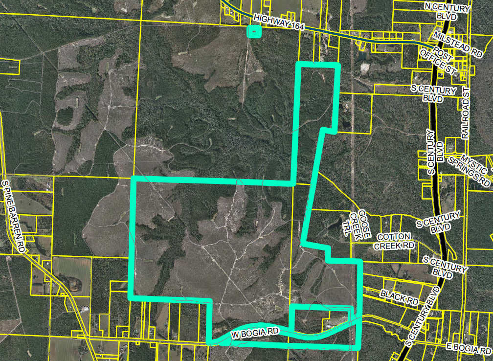 The development is planned for an area behind and north of existing homes on West Bogia Road between South Pine Barren Road and Highway 29. A small portion of the project area includes land north and south of West Bogia Road, surrounding Ray’s Chapel Baptist Church (map below). There are currently no homes on the project property.