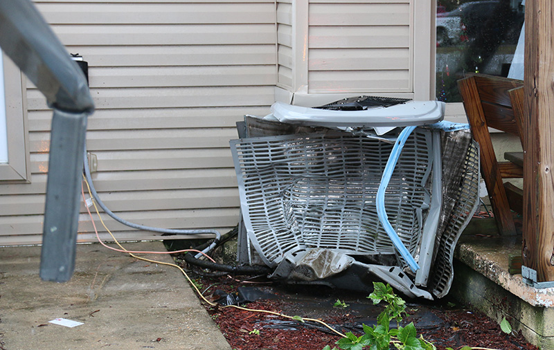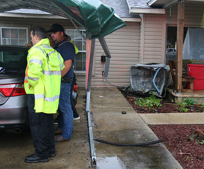 The delivery gone wrong happened on West Highway 4 near the First Baptist Church of Bratt. The mail carrier was in a private driveway when she pulled forward, crashing into a freestanding metal carport and an outdoor HVAC condensing unit, according to reports, barely missing the resident’s vehicle and stopping just short of the house.