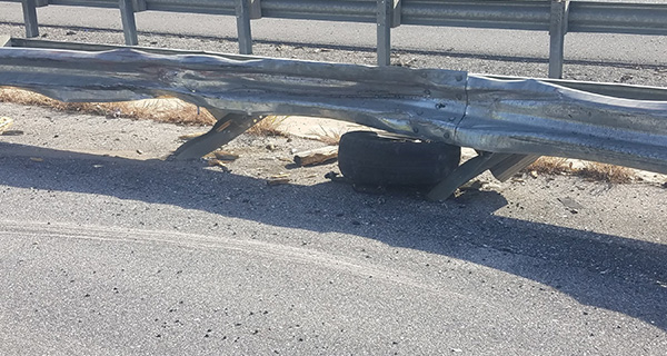 There were no injuries when a vehicle struck a guardrail on I-10 near the Highway 29 exit Tuesday The drive refused medical transport. NorthEscambia.com photo by Kristi Barbour, click to enlarge.