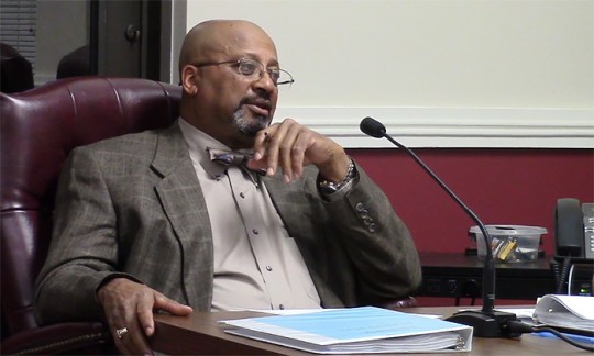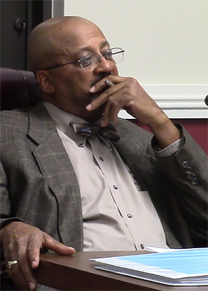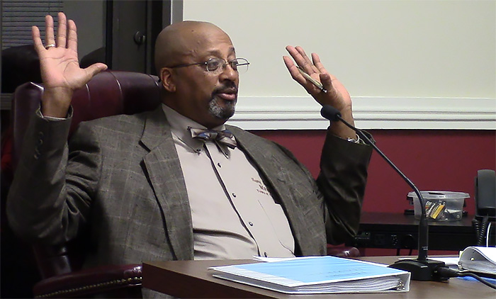 Pictured: Century Mayor Henry Hawkins discusses security cameras and prison inmates during a council meeting. NorthEscambia.com photos, click to enlarge.