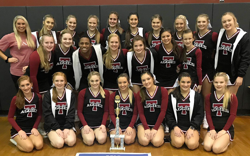 The Tate High School varsity cheerleaders placed first this recently among small varsity coed teams at the Northwest Florida Universal Cheerleaders Association. They also received a bid to the national competition in Orlando. This was the fifth first place finish of the competitive season for the Aggie varsity cheerleaders.