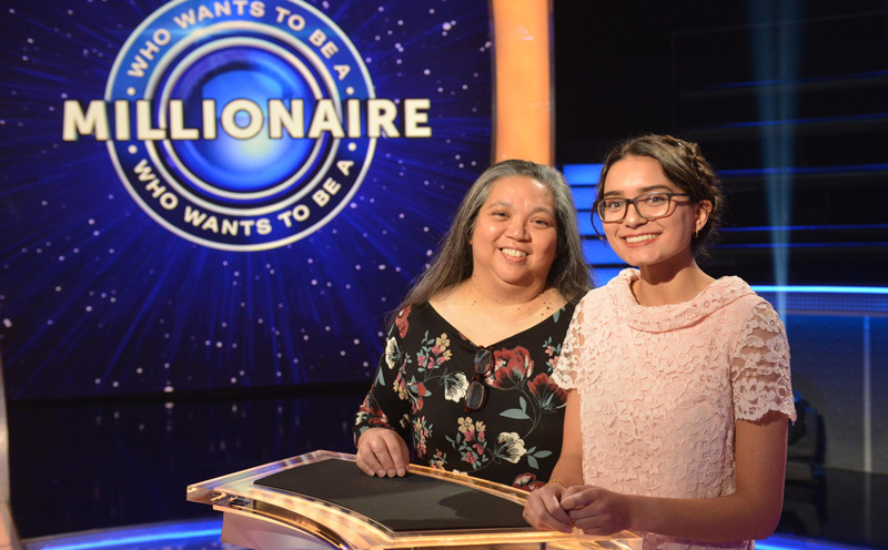 Pictured: Samantha Brown (left) and her mom Clarissa Brown on the set of “Who Wants To Be a Millionaire.” Photo courtesy Jacob Kepler-Disney/ABC Home Entertainment and TV Distribution for NorthEscambia.com, click to enlarge.